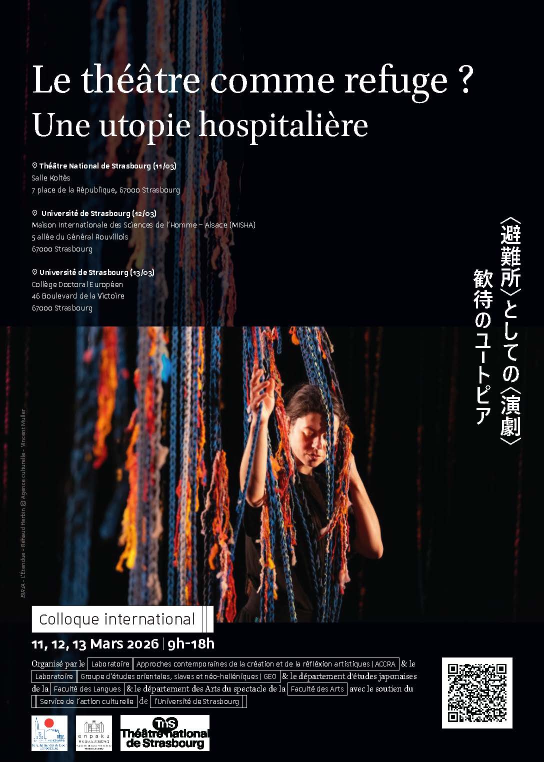 Ce colloque international, porté par les Universités de Strasbourg (France) et Waseda (Japon), a pour ambition d’étudier cette utopie hospitalière du théâtre dans les traditions occidentale et orientale selon divers axes : historique ; dramaturgique/littéraire ; scénographique ; et politique.