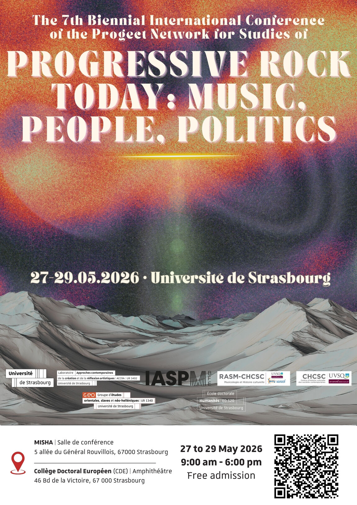 Qu'est-ce que le rock progressif aujourd'hui, et quel est son rapport avec son histoire longue de plus d'un demi-siècle ? Quels sont les liens entre la musique, le public et les industries culturelles dans le monde du rock progressif ? Sachant qu'il est impossible de répondre à ces questions par des formules ou des définitions simples, nous accueillons à l'Université de Strasbourg des chercheurs issus de diverses disciplines — musicologie, sciences sociales, sciences politiques, économie, études culturelles, philologie, etc. — qui pourront apporter de nouvelles perspectives pour illustrer les innombrables articulations du « phénomène prog ».